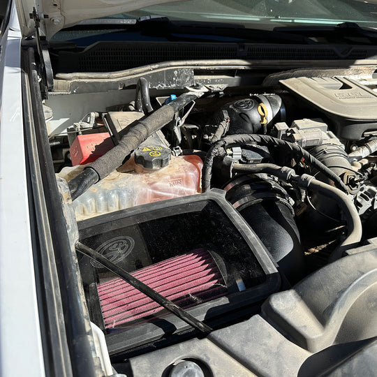 Our cold air intake for the 2011-2016 Chevy / GMC Duramax 6.6L was engineered to minimize air restriction and flows 29.10% better than stock. This kit comes with a fully enclosed airbox that protects the filter from dirt and keeps out engine heat.